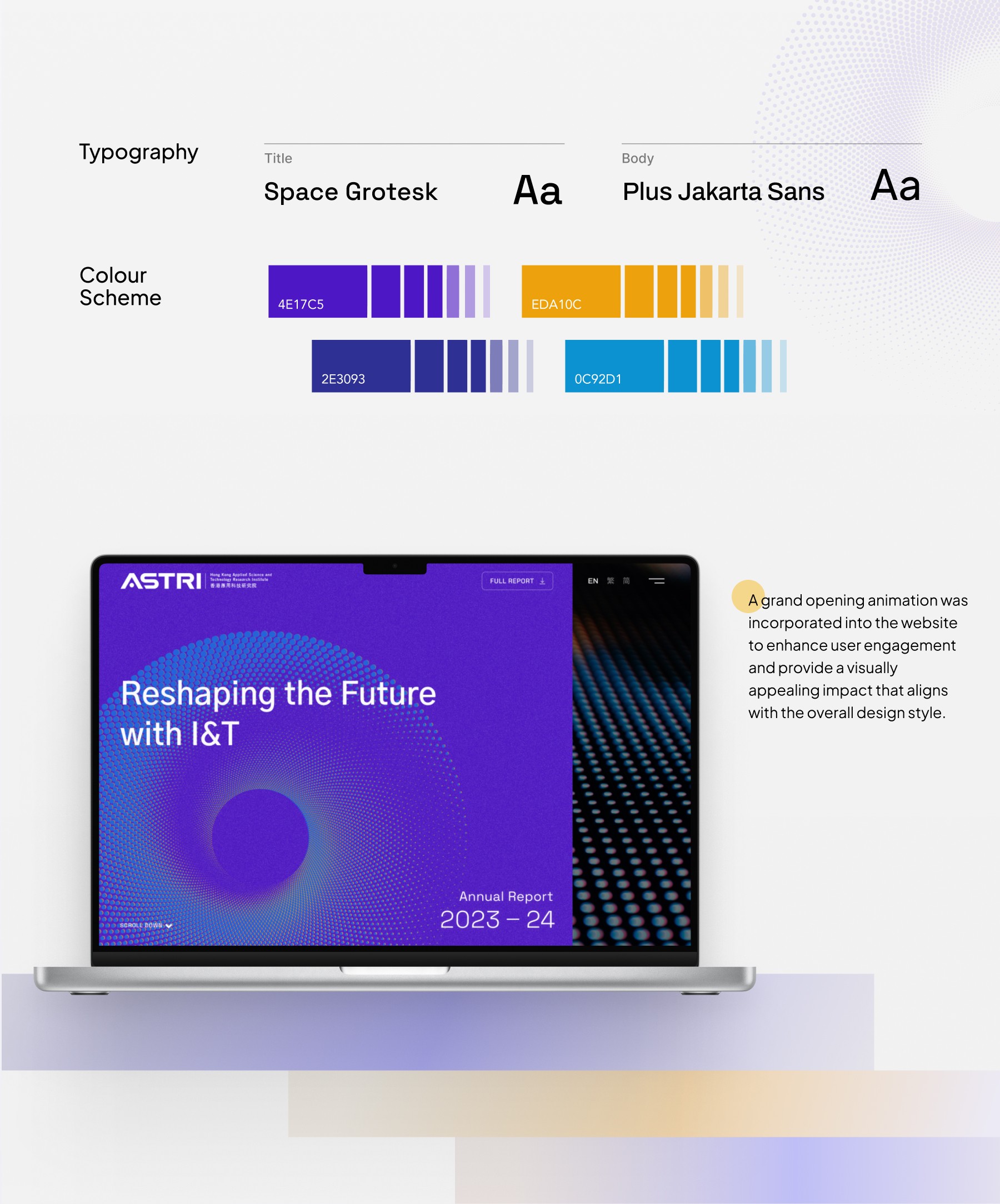 With a commitment to research and development, they aim to present their annual achievements and goals in a visually engaging manner. The client sought to create an online annual report that not only showcases their accomplishments but also reflects their brand identity and values.