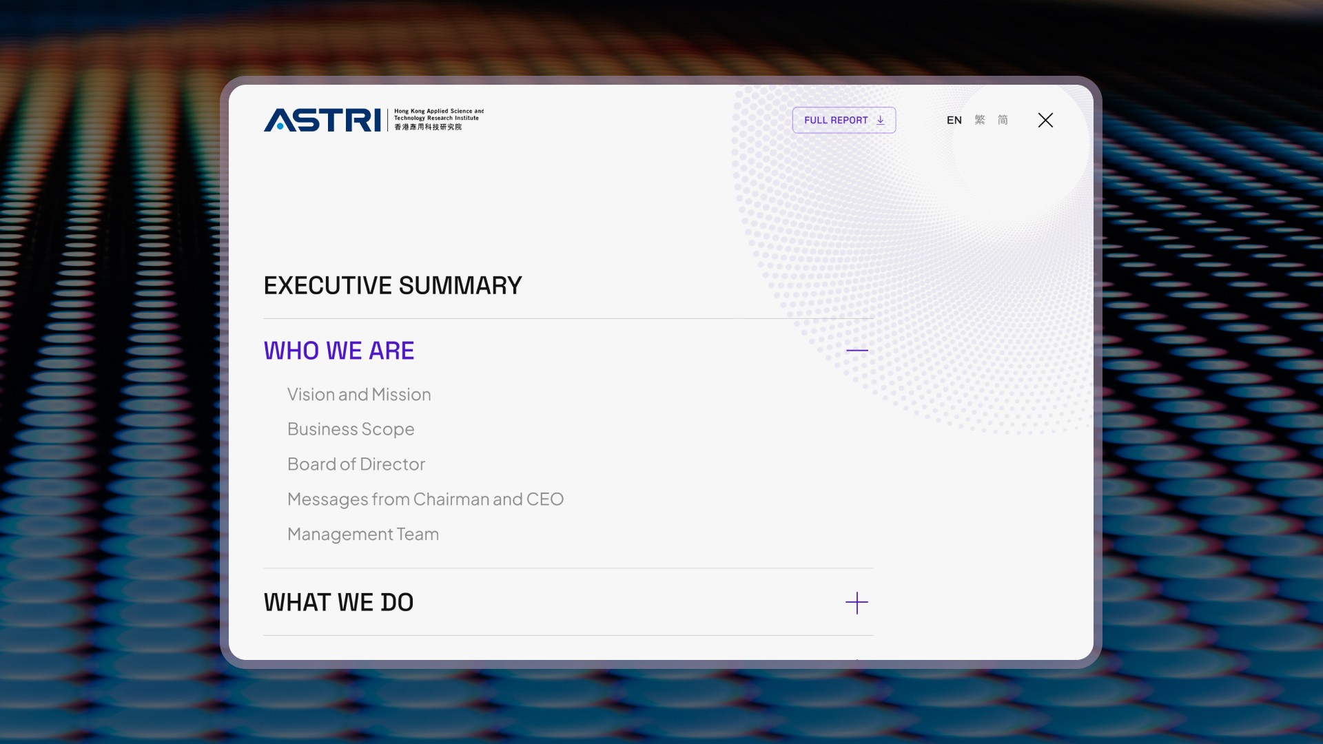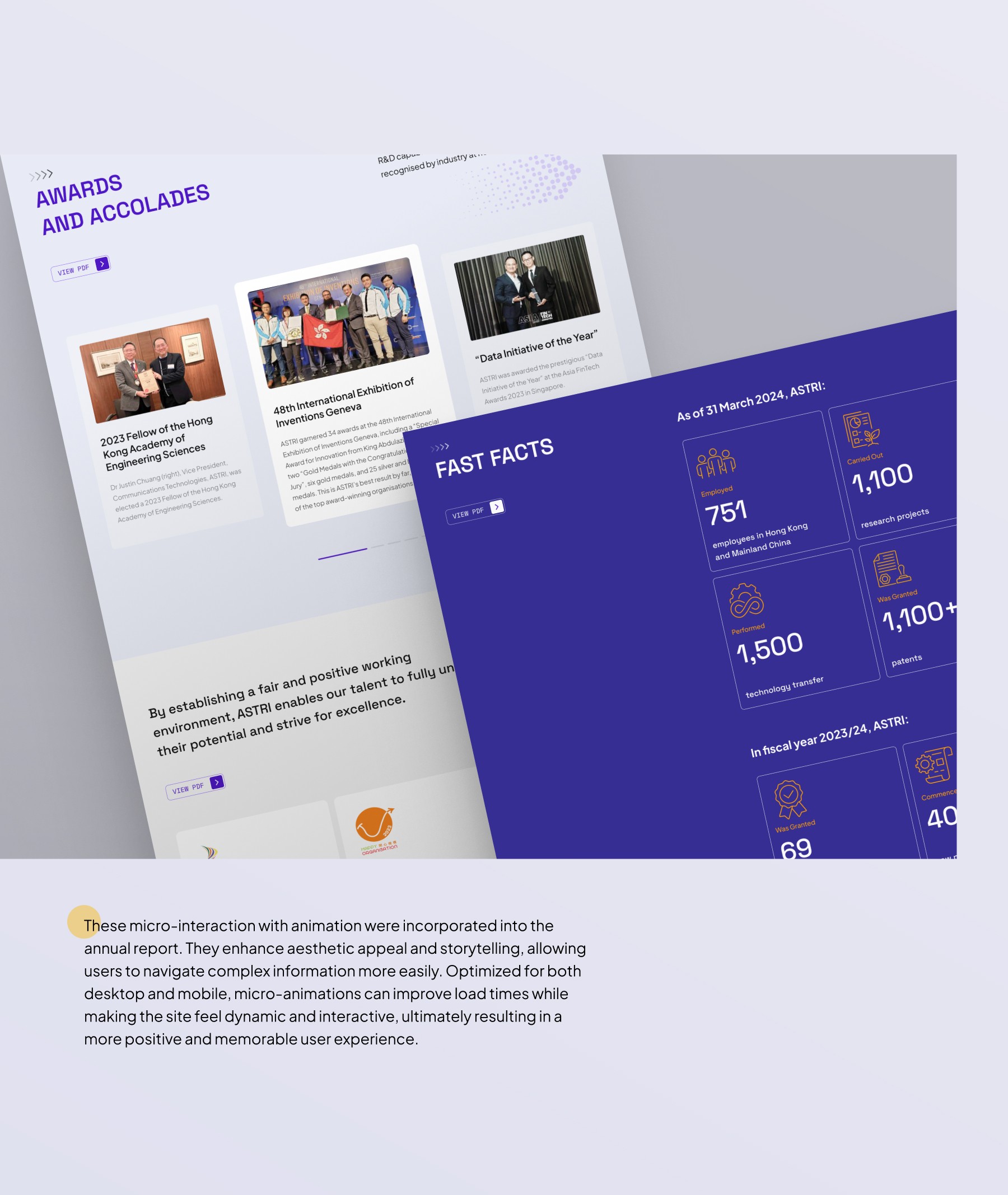 The primary challenge was to design an engaging and informative one-page annual report that effectively communicates ASTRI's achievements over the past year while maintaining user interest throughout the lengthy content.