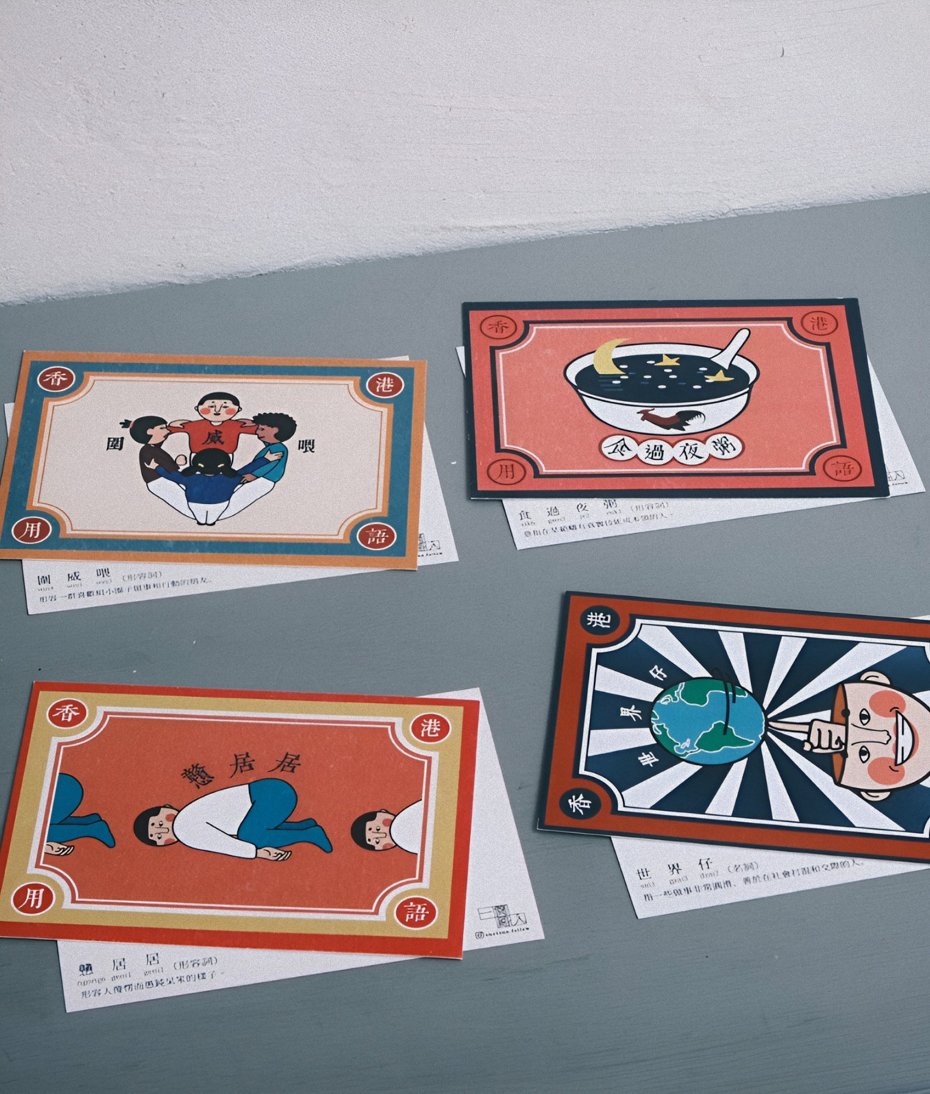I put together a fun series of postcards and a sticker set to share the joy of Cantonese slang.